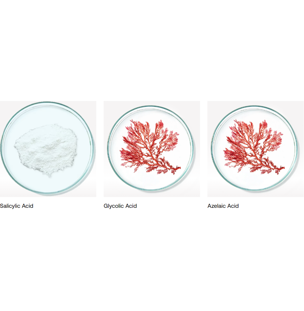 3% azelaīnskābe – dabiska skābe ar pretiekaisuma un pretmikrobu īpašībām.