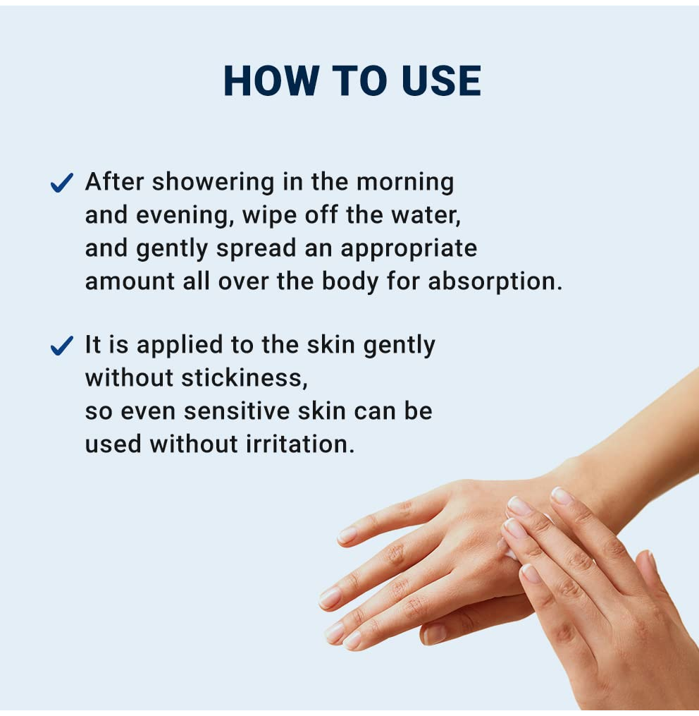 Pēc dušas no rīta un/vai vakarā uzklājiet uz sausas ādas.