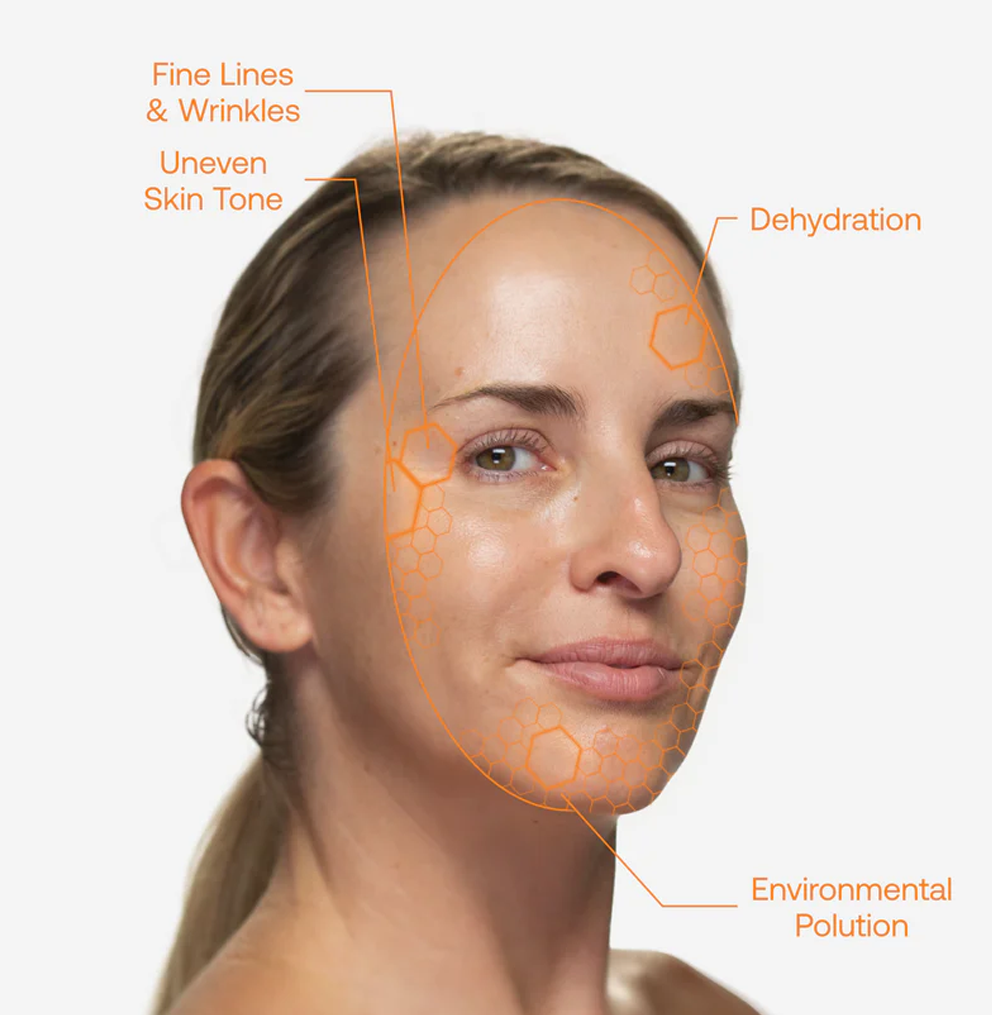 - Spēcīgs sinerģisks askorbīnskābes, ferulīnskābes un E vitamīna maisījums nodrošina fotostabilu, bioaktīvu ādas profilaksi, korekciju un atjaunošanos agrīnā, mērenā un smagā fotonovecošanās stadijā.