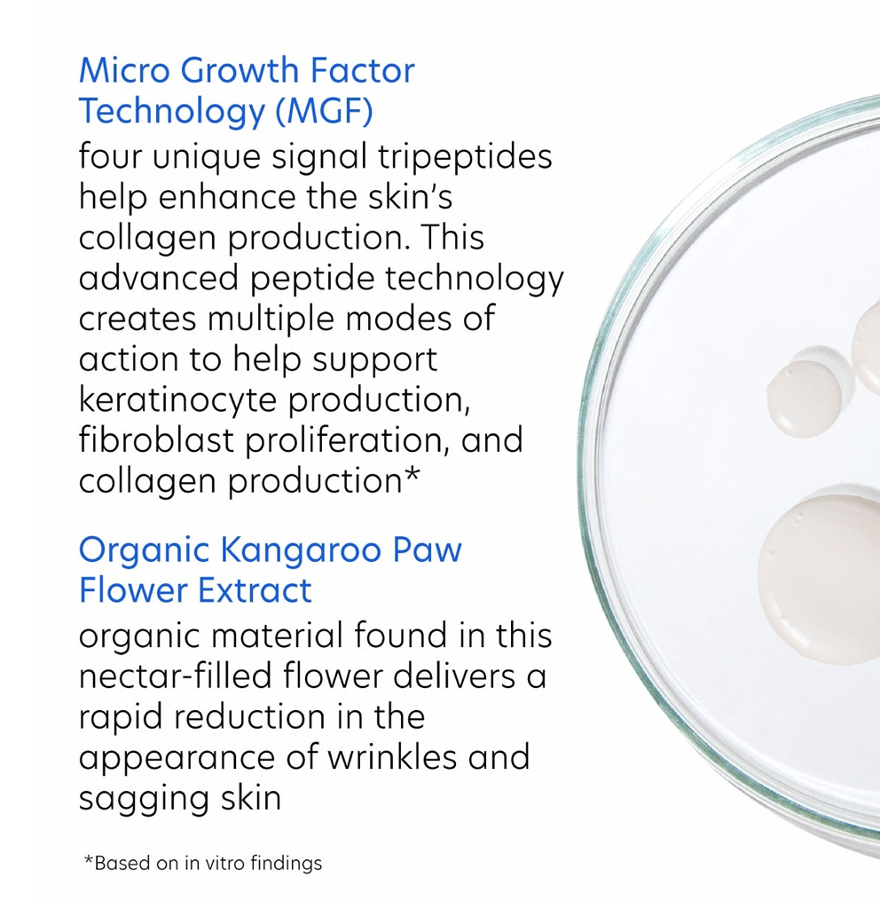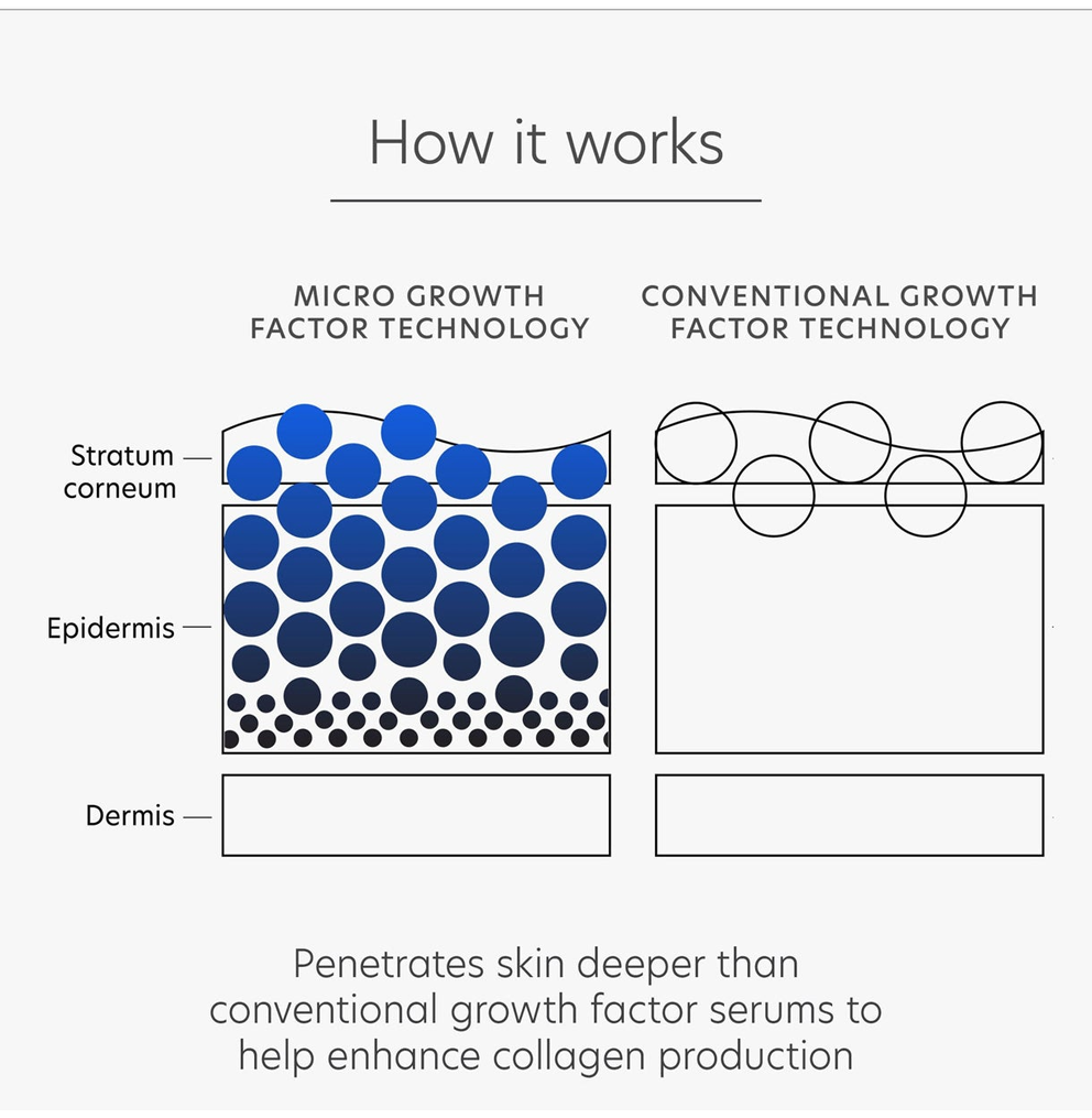 Klīniski pierādīts, ka šis uzlabotais serums nostiprina un paceļ ādu līdz pat 60%. Tradicionālie augšanas faktori neiekļūst dziļāk par ādas virsmu, tāpēc to iedarbība ir ļoti ierobežota. PCA Skin mikro augšanas faktoru tehnoloģija nodrošina, ka šie augšanas faktori iekļūst līdz pat 10 reizēm dziļāk nekā tradicionālās tehnoloģijas2. Tas efektīvi palielina kolagēna ražošanu, uzlabo ļenganas ādas izskatu, palielina ādas apjomu un tvirtumu, savelk un samazina grumbas.