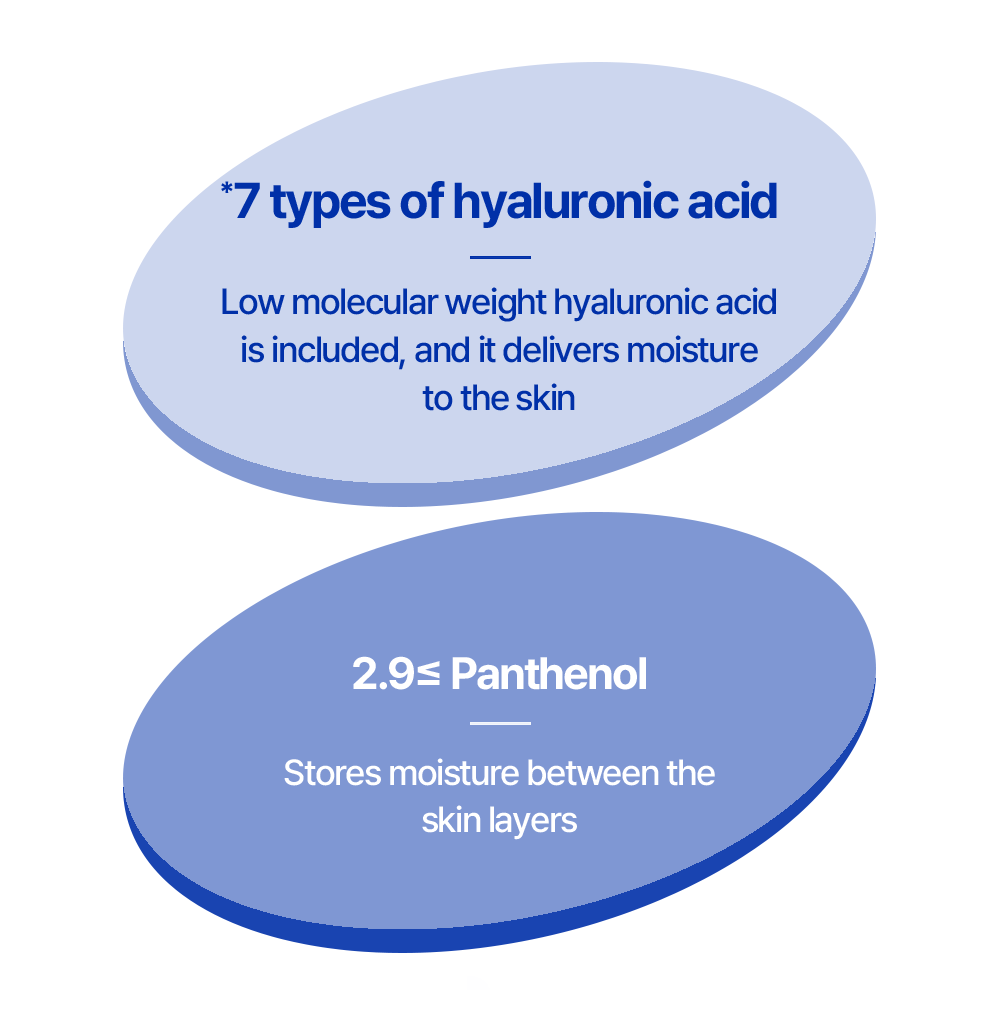 7 dažādu hialuronskābju komplekss – nodrošina ilgstošu mitrināšanu visiem ādas slāņiem, nomierinot pat sausāko ādu.