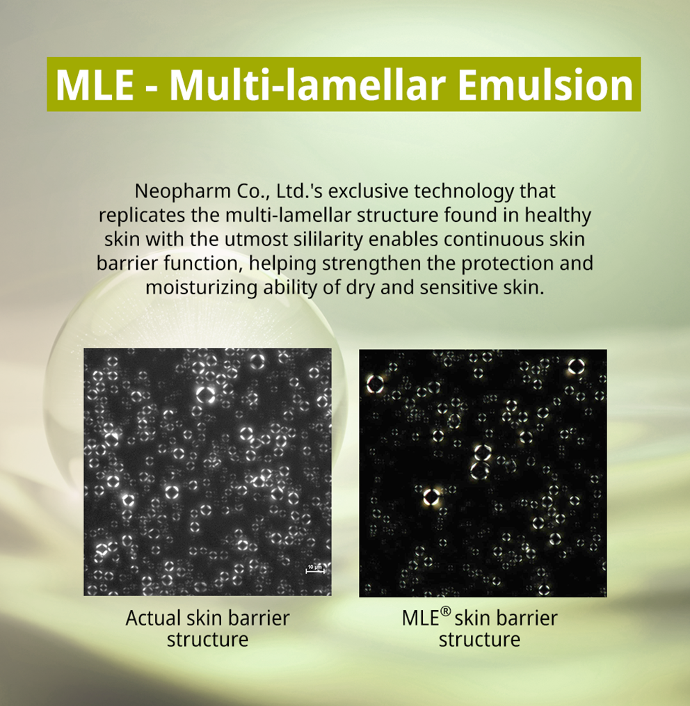 MLE® tehnoloģija – cilvēka dabīgos lipīdus atgādinoša daudzslāņaina emulsija ar keramīdiem, kas palīdz atjaunot ādas aizsargbarjeru.